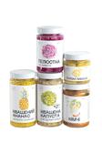 У наборі п'ять продуктів ручної ферментації. Кімчі з кочукару і часником. Ананас з капустою і куркумою — негострий, сонячний. Солоні лимони в оливковій олії. Пелюстка на комбучі — капуста, буряк і живий оцет. Квашена капуста з ягодами ялівцю — ліс і зима в одній банці.